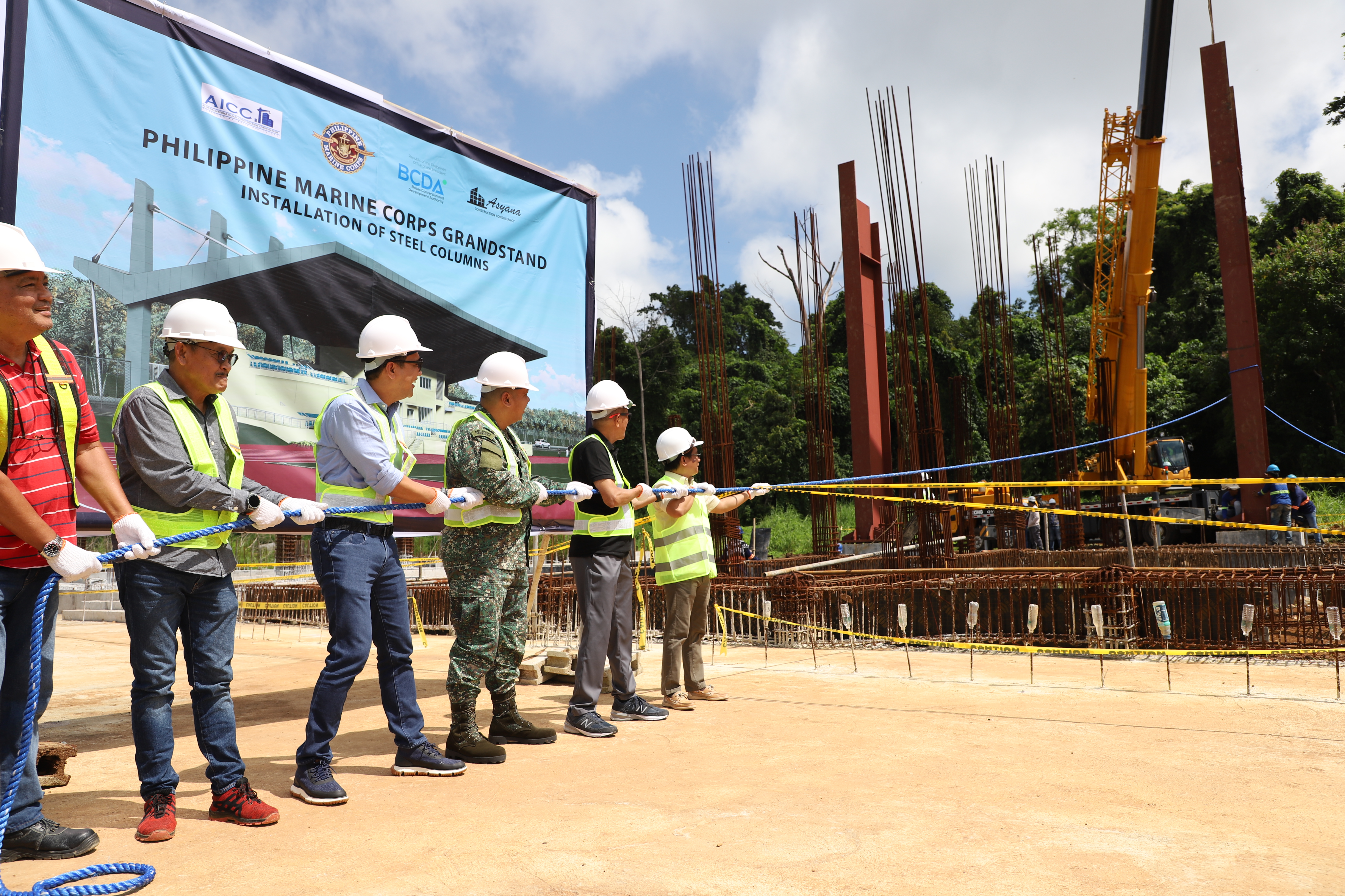 BCDA Chairman Delfin Lorenzana, BCDA President and CEO Engr. Joshua Bingcang, and Philippine Marine Corps Commandant MGen Arturo Rojas also led the installation of steel columns for the Philippine Marine Corps grandstand that is expected to be completed by November this year. BCDA photo