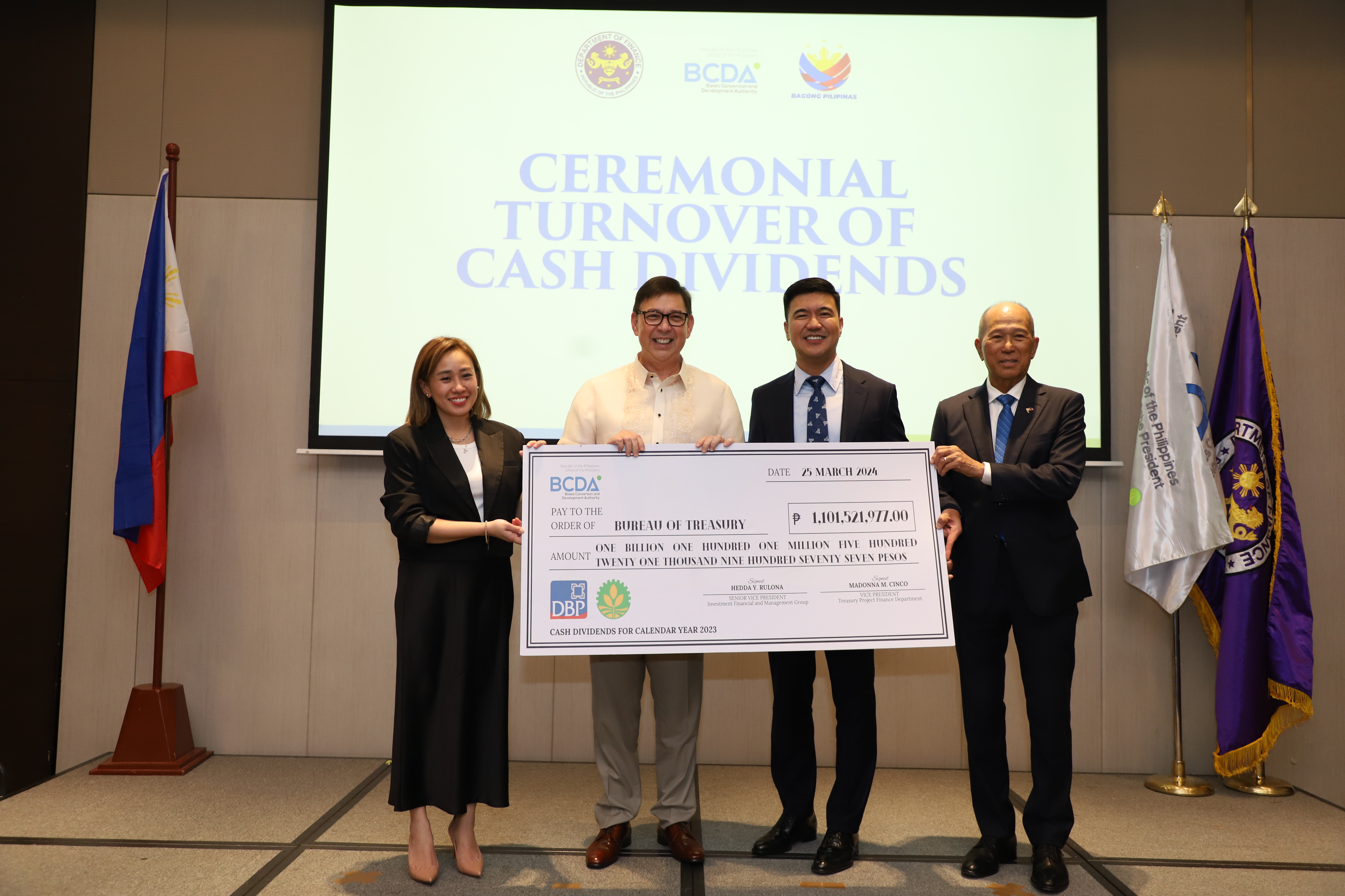 On behalf of the Bureau of Treasury, Department of Finance (DOF) Secretary Ralph G. Recto (second to the left) received a cheque worth Php1.1 billion from the Bases Conversion and Development Authority (BCDA) on April 29, representing its dividends remittance for 2024 to help beef up the national coffers.